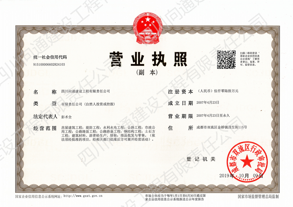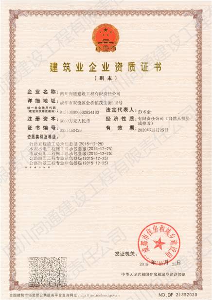 四川向通建設(shè)工程有限責(zé)任公司 四川向通建設(shè)工程有限責(zé)任公司成立于2007年,注冊資本金5060萬元,是一家專業(yè)從事瀝青混合料生產(chǎn)、專業(yè)分包以及市政道路、公路、路基工程專業(yè)施工建設(shè)的企業(yè)。公司注冊地址及生產(chǎn)廠區(qū)位于成都市雙流區(qū)金橋鎮(zhèn)茂生街115號,總占地面積約120畝;辦公地址位于雙流區(qū)海濱城海濱廣場7座11樓。公司生產(chǎn)廠區(qū)(雙流金橋)現(xiàn)有LB-5000型瀝青混合料拌合樓1套,每小時瀝青混合料生產(chǎn)量可達(dá)380噸。此外,根據(jù)項目需要,公司在多地建立4000型拌合站以服務(wù)施工(廣安齊福、達(dá)州、綿陽等),每小時瀝青混合料生產(chǎn)量為320噸。各種國內(nèi)外道路施工機(jī)械:攤鋪機(jī)、壓路機(jī)、銑刨機(jī)、灑布車、封層車、吊車、拖車、等70余臺,可滿足各種道路施工需求。公司近100輛保溫運輸車輛均安設(shè)保溫板、加塞保溫棉、覆蓋棉絮和隔熱防水雨篷,有效減少瀝青混合料在運輸過程中的溫度流失進(jìn)而保證瀝青路面的施工質(zhì)量。 公司目前擁有眾多優(yōu)秀的技術(shù)人才,成熟的市場渠道,良好的企業(yè)聲譽(yù)。現(xiàn)有各專業(yè)施工人才共計79人;5支專業(yè)的施工班組可根據(jù)現(xiàn)場的具體情況制定實施性施工方案。今后公司將竭誠為各界客戶提供出色的產(chǎn)品和服務(wù)及具有競爭性的價格和具有創(chuàng)新精神的高效解決方案。 公司曾經(jīng)榮獲:新津鄧雙段被新津縣政府評為“優(yōu)良工程”;雙流宗申大道被雙流縣政府評為“優(yōu)良工程”;成都后花園被成都市政府評為“重合同守信譽(yù)單位”;被三一重工評為“有遠(yuǎn)見單位”。并在2018年1月被中國五冶集團(tuán)評為“優(yōu)秀供方”;同年3月被四川交投評為2017年度“優(yōu)秀合作單位”的榮譽(yù)。榮譽(yù)的背后是我們公司所有員工堅持不懈的努力。 作為現(xiàn)代化的企業(yè),公司將以技術(shù)為切入點,以信譽(yù)為支撐點,以市場為著眼點,促進(jìn)管理創(chuàng)新和技術(shù)創(chuàng)新。因此我公司能在短時間內(nèi)迅速發(fā)展成為一家擁有各類中大型施工機(jī)械設(shè)備的公司。在今后的工作中我們將借用現(xiàn)代電子信息溝通的便利為公司的發(fā)展助力,同時將秉承發(fā)揚(yáng)以往的團(tuán)結(jié)拼搏精神,推動公司成為“快穩(wěn)型”發(fā)展的企業(yè)。 在未來的發(fā)展過程中,四川向通始終秉承“以質(zhì)量求生存,以信譽(yù)求發(fā)展”的企業(yè)管理理念,以“啟后為先創(chuàng)佳績,爭做路建行業(yè)標(biāo)”的企業(yè)宗旨與建設(shè)單位建立合作關(guān)系,創(chuàng)造更加輝煌燦爛的明天! 四 川 向 通 建 設(shè)